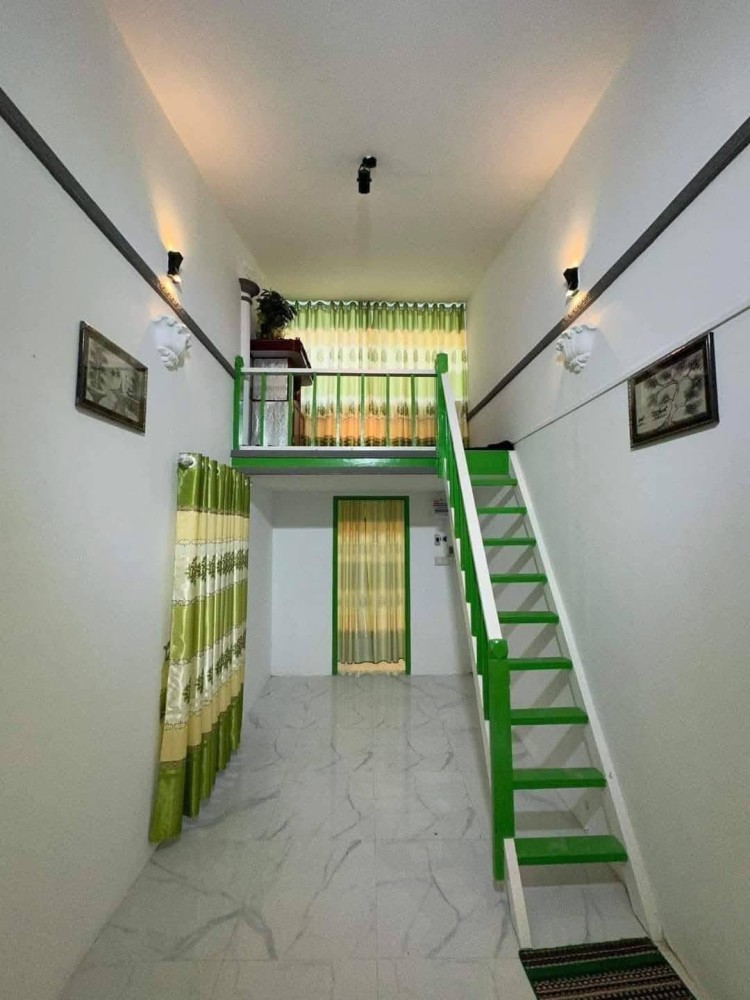 အလှပန်းပင်လေးတွေနဲ့လှပ၍နေချင်စရာအစိမ်းရောင်နဲ့အဖြူစပ်အိမ်ကလေး ကတော့